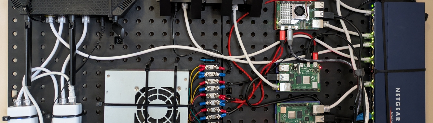 Before I started this project, I had two Raspberry PIs haphazardly perched on-top of my stereo. One of the PIs ran Pi-hole and Caddy, the other PI ran several python websites written using FastAPI. To run more stuff locally, I wanted to get another Raspberry Pi to run a firewall on OpenWRT and another Raspberry Pi to run some of my websites in Docker containers. My current arrangement of PIs wasn’t very “elegant”, so I decided to mount everything on a pegboard.